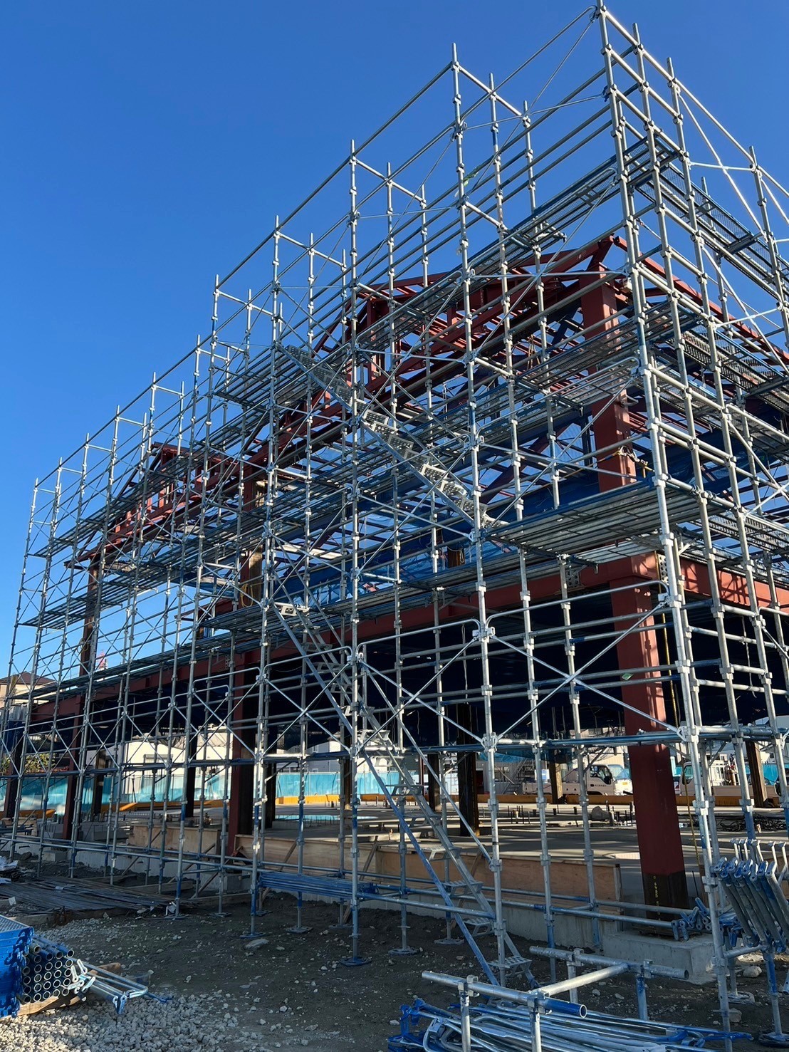 この写真は、某県外の足場工事の現場写真となります。