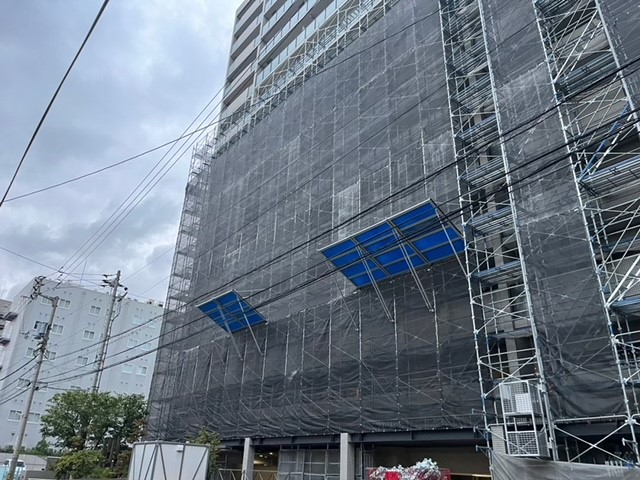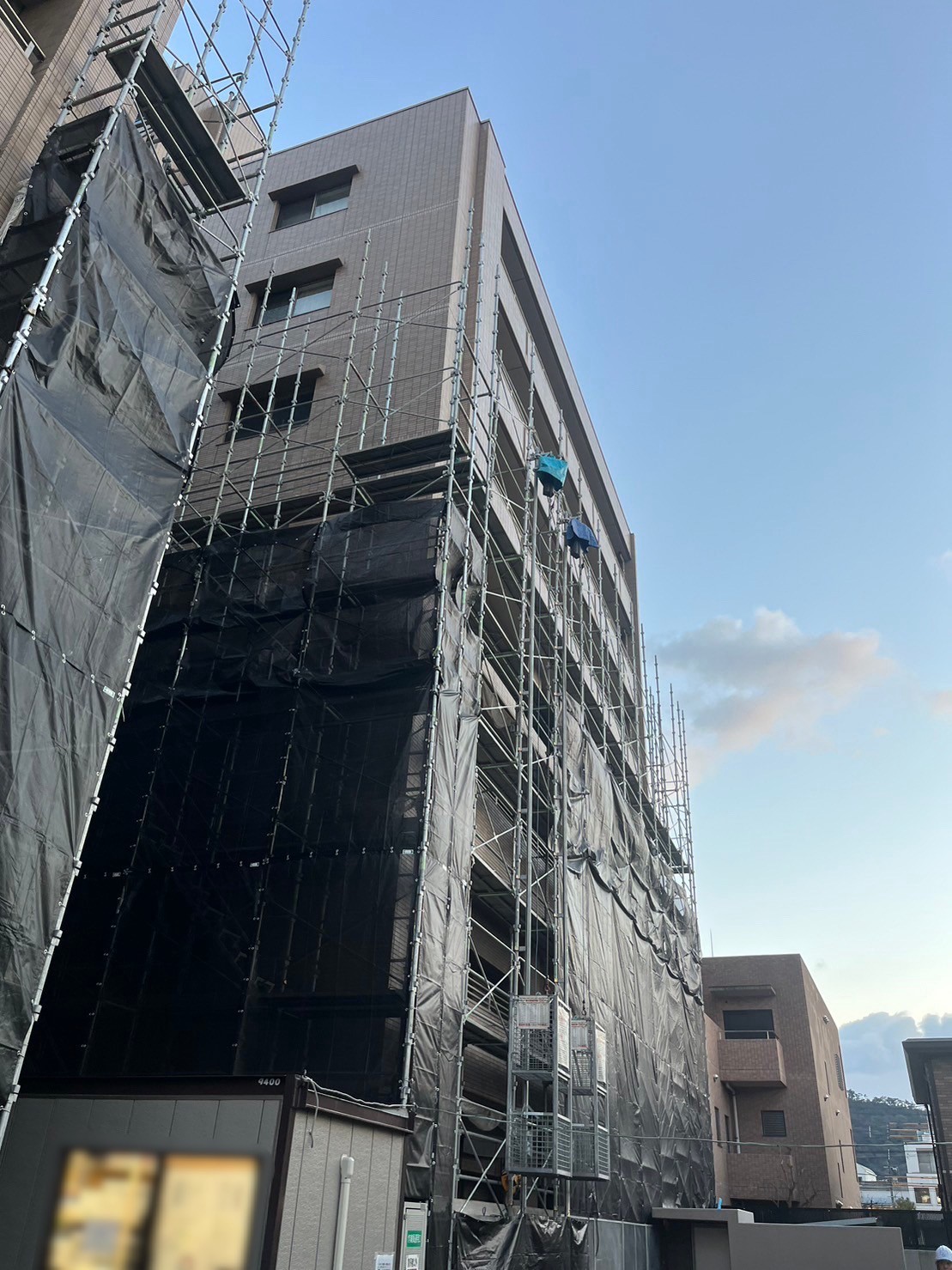 県外の某マンションの足場工事です。約2ヵ月で丁寧に仕上げましたkao-a02.gif
